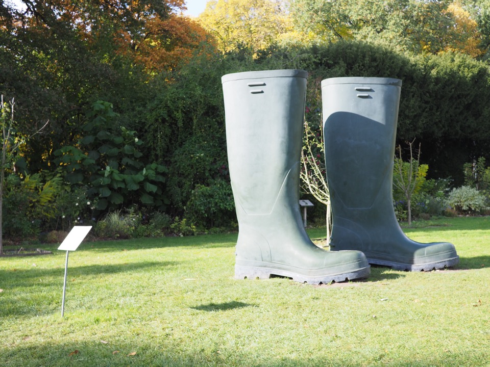 Puis, nous sommes allés à la découverte des jardins qui nous emmènent dans un univers de contes de fées et de légendes : Ticoeur et Titpuce y ont notamment croisé les 7 nains mais aussi des oeuvres d’art très amusantes et originales comme des bottes de pluie géantes ou encore des jambes immenses au milieu du bois. Aussi, même en cette saison il y avait encore tout un espace très fleuri. Au total le jardin compte 450 variétés de roses à découvrir au printemps durant les journées de la rose.