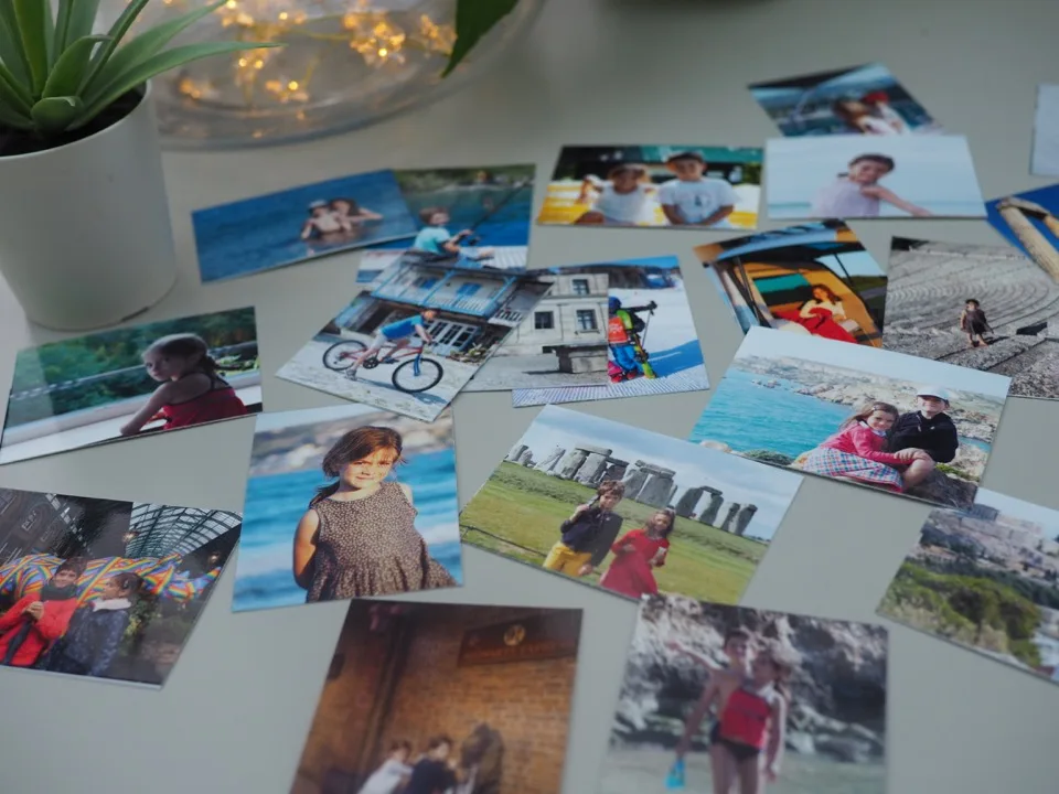 J’ai sélectionné des photos de nos derniers voyages en famille et je les ai imprimées en tout petit format. Des photos de notre voyage en Grèce, de notre semaine à Malte, de notre séjour au ski, de nos vacances à Corfou, de nos week-ends en France et de notre nouvelle vie en Angleterre. Des moments que je souhaitais figer. Je sais que ces petites photos leur feront plaisir car ils aiment tenir des albums qu’ils décorent eux-mêmes (surtout ma Titpuce, c’est une grande fan de scrapbooking !).