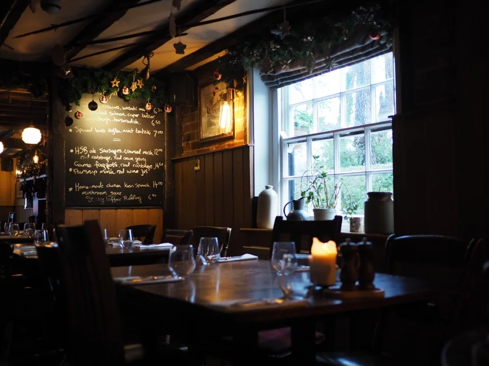 Nous sommes allés dans la New Forest que nous aimons tant car nous ne l’avions pas encore vue en version « fin de l’automne »… (Relisez mon article sur la New Forest en septembre, c’était le top !). Cette fois-ci, nous n’avons pas croisé d’animaux et beaucoup d’arbres se sont dévêtus mais c’était tout de même une belle balade ! Nous avons surtout été en admiration devant les immenses sapins ! Pour le déjeuner, nous nous sommes arrêtés dans un pub situé dans la forêt, lui aussi tout décoré pour Noël. Nous y avons mangé un Sunday Roast (le rôti du dimanche… tradition anglaise…) et nous avons goûté le mulled cider (la version cidre -et plus anglaise- du vin chaud de Nöel).