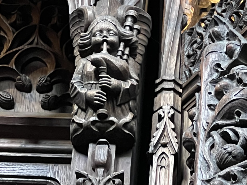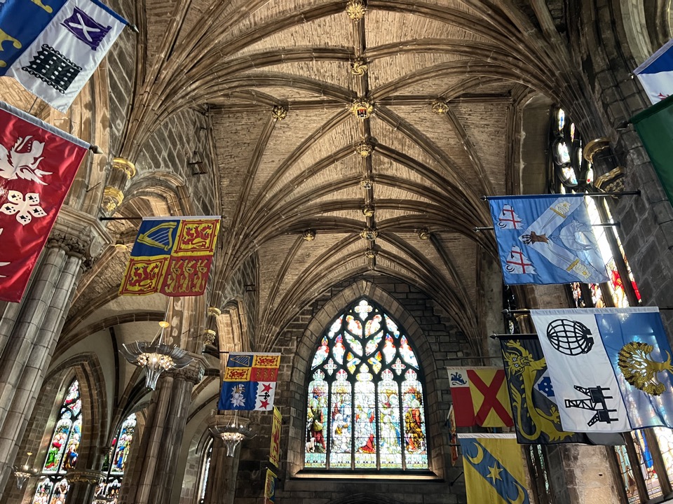 Elle est magnifique et elle trône sur le Royal Mile ! De l’extérieur, on remarque déjà sa flèche en forme de couronne, ce qui est inhabituel ! Il faut également visiter son intérieur gothique, d’autant plus que l’accès est gratuit (donations suggérées). Ne manquez pas la Thistle Chapel située au fond de la cathédrale : son plafond est impressionnant et on y voit aussi de grands panneaux de bois avec des sculptures dont d’adorables petits anges qui jouent de la cornemuse ! Il y en a 3. Titpuce et moi en avons trouvé 2. Pour le 3iè, nous avons dû demander à un des guides bénévoles. Cette chapelle n’est pas toujours ouverte. Nous nous sommes rendues trois fois dans la cathédrale avant d’y avoir accès (heureusement, vous verrez qu’on passe souvent par le Royal Mile !).